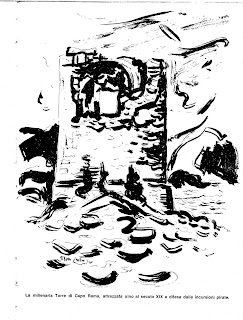 Pietro Mocèri, guardiano alla torre di Rama, era inquieto, scrutava l’orizzonte, facendo con la mano scudo agli occhi contro gli ultimi raggi del sole morente. Ma… strano! dove andava, di dove veniva quello « schifazzo » che, doppiato il capo era entrato nel golfo? che arrancava incerto a mezza vela? Mocèri senza perdere d’occhio la rotta del veliero, raccolse una bracciata d’èrica e restucce, accese un fuocherello tra due pietre per preparare la sua parca cena di cicòrie messe a bollire nella pentola di terra cotta affumicata. Strano! dove va quel veliero? perché cambia continuaumente rotta? Pensieroso, accigliato, mangiò in fretta la sua misera cena e salì sulla torre.